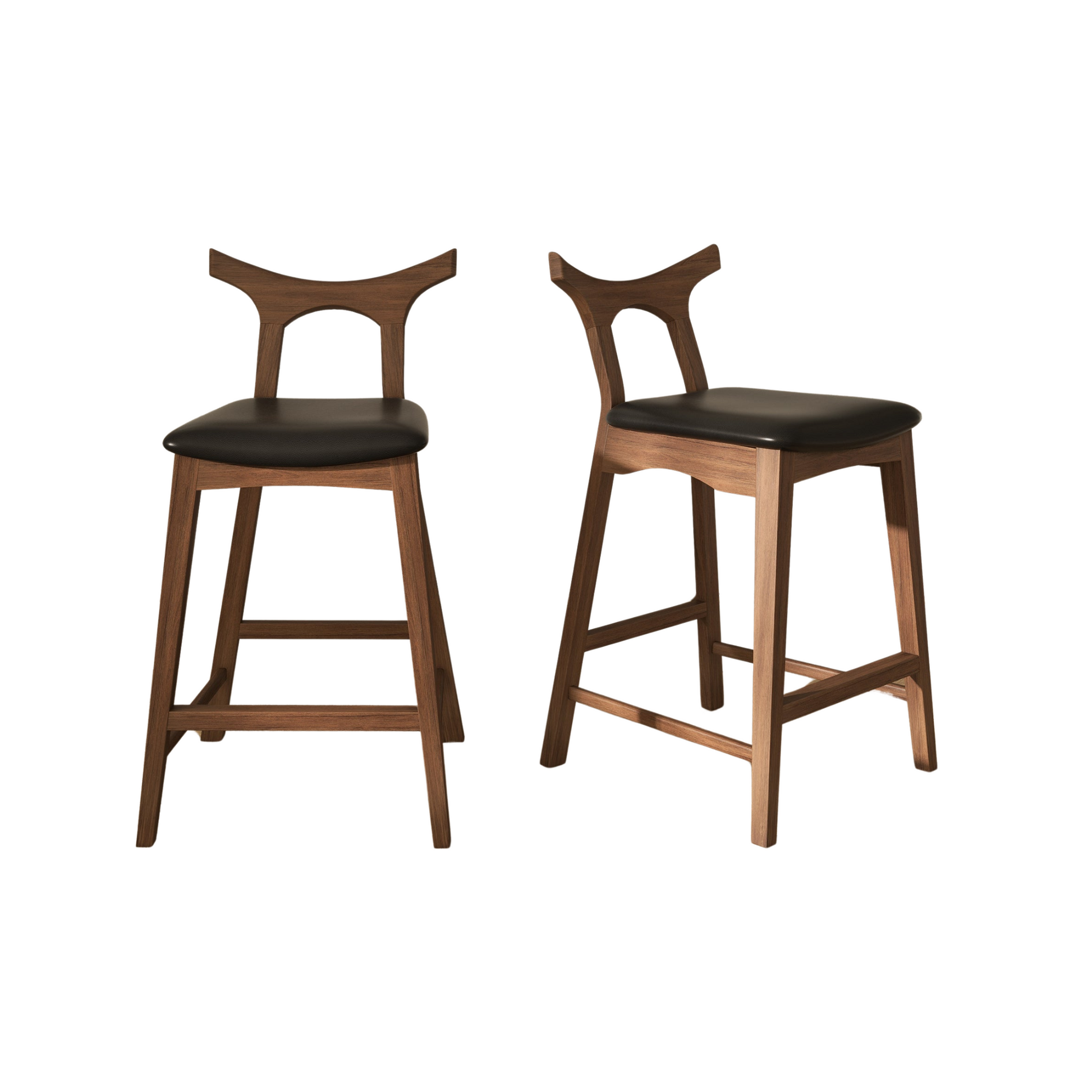 The Mid-Century Modern solid wood set of 2 bar/counter chairs is a stylish and functional addition to any contemporary home or commercial space. Crafted with high-quality solid wood, these chairs are built to last and provide a sturdy seating option. The sleek black PU upholstery adds a touch of sophistication and elegance to the chairs, making them suitable for both formal and casual settings. The black color also allows for easy integration into any existing interior design scheme. The chairs are comfortable and ergonomic, with a curved backrest and cushioned seat. This ensures optimal comfort and support, making them perfect for extended periods of sitting. The footrests provide additional comfort and stability, allowing you to relax and enjoy your time at the bar or kitchen counter. With their Mid-Century Modern design, these chairs exude a timeless appeal that never goes out of style. The clean lines, tapered legs, and minimalist aesthetic make them versatile enough to complement various decor styles, from retro to contemporary. In addition to their aesthetic appeal, these bar chairs are also highly functional. They are the ideal height for bar counters or kitchen islands, allowing you to comfortably sit and socialize while enjoying a meal or a drink. The solid wood construction ensures durability and longevity, making them a worthwhile investment. Whether you want to upgrade your home bar or add a touch of sophistication to your kitchen, the Mid-Century Modern solid wood set of 2 bar chairs is a perfect choice. With their combination of style, comfort, and durability, they are sure to enhance any space and provide a chic seating option for years to come.