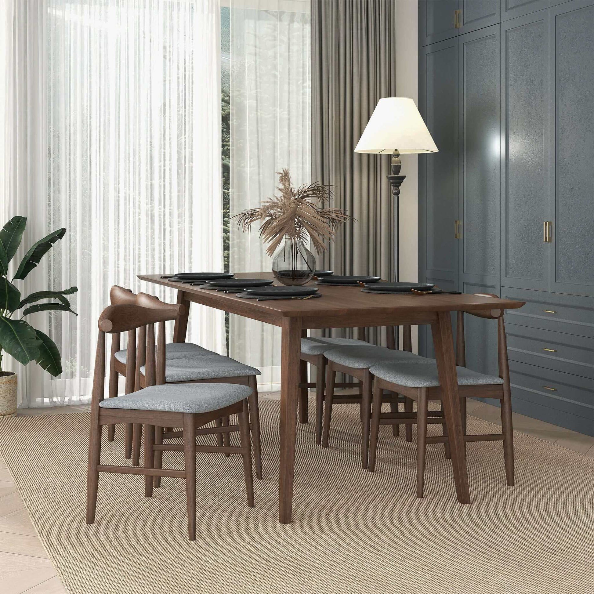 The dining chair is a stylish and versatile piece of furniture that combines solid wood construction with a mid-century modern design. It is perfect for various living spaces such as the living room, kitchen, bedroom, study room, apartment, loft, or condo. Crafted with a sturdy solid wood frame, this dining chair ensures durability and stability, making it suitable for everyday use. The sleek upholstery adds a touch of elegance and sophistication to any room, while also providing comfort and easy maintenance. With its timeless mid-century modern design, this dining chair effortlessly blends with different interior styles, whether it's contemporary or retro-inspired decor.