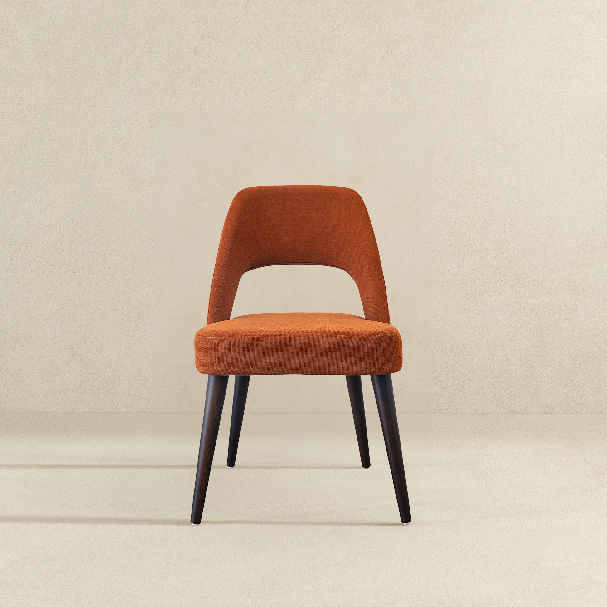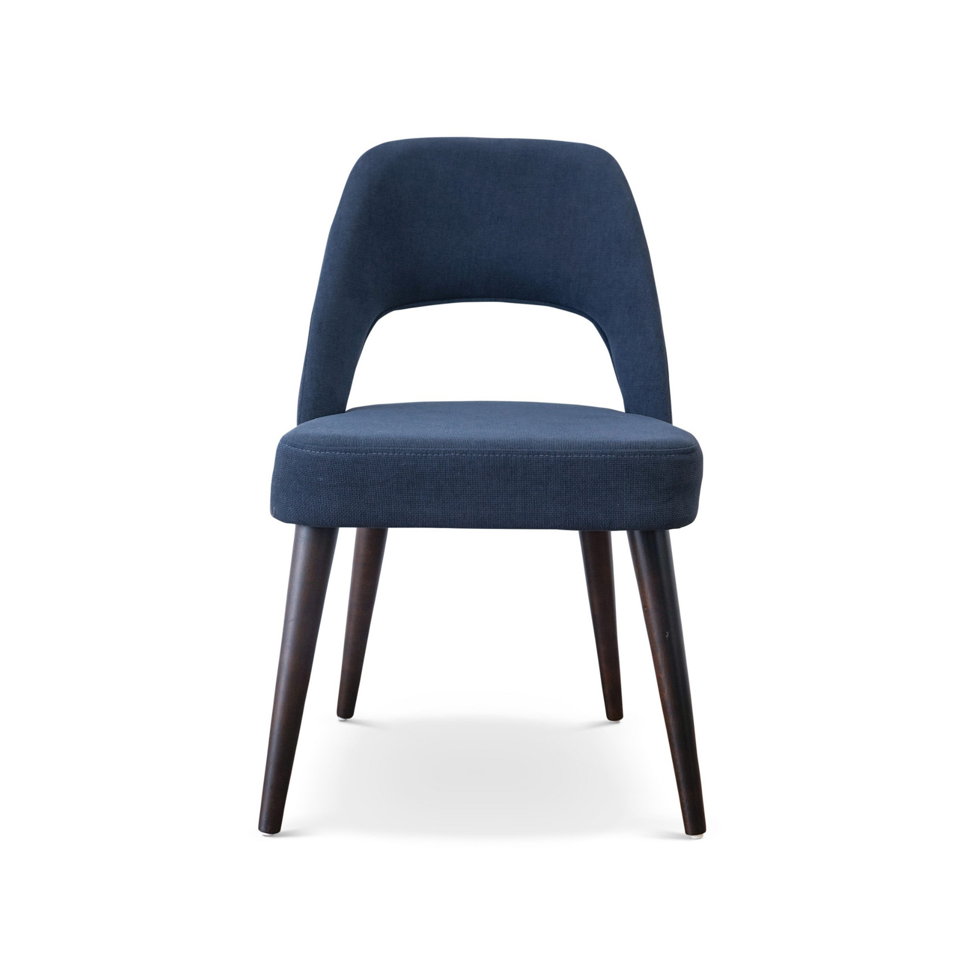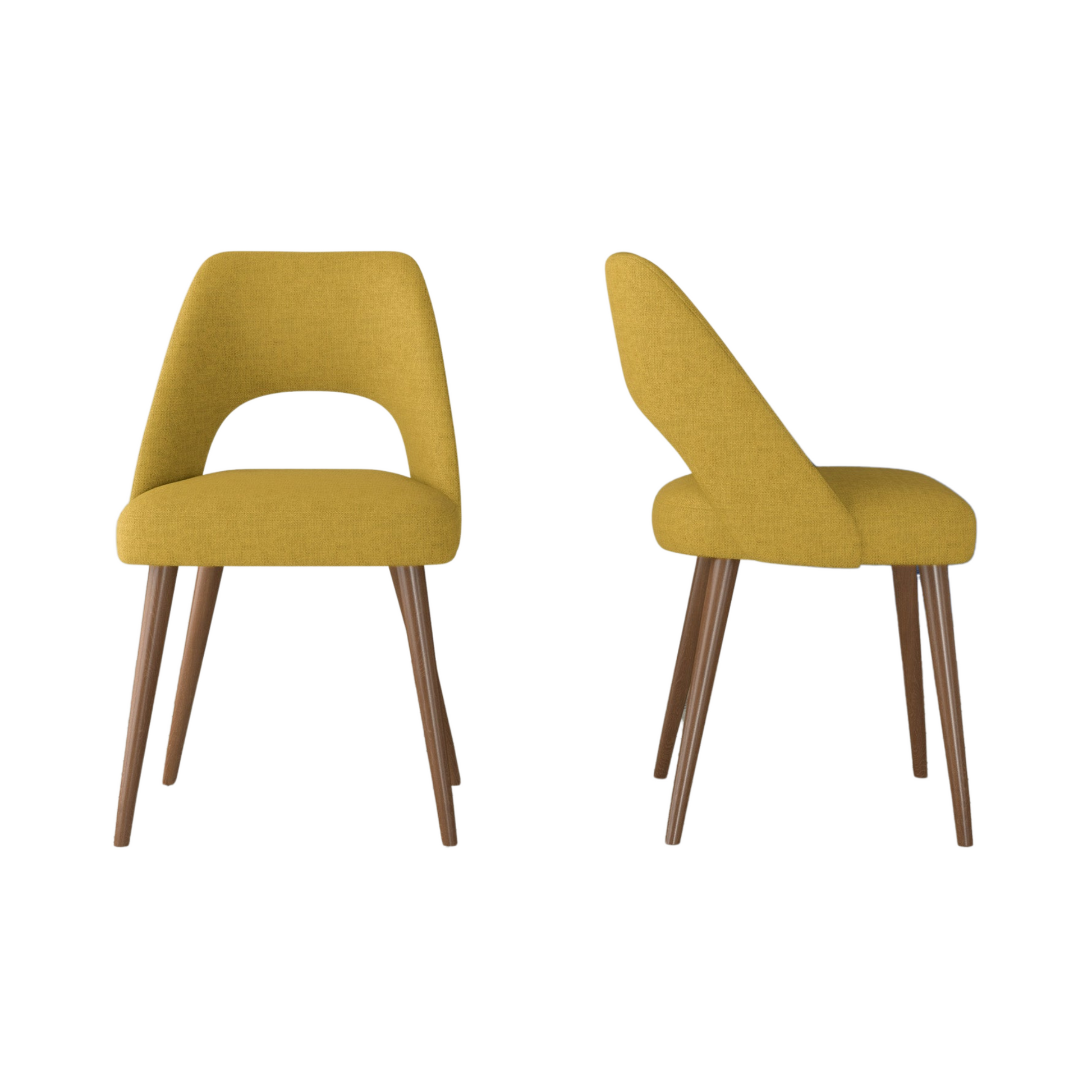 This 2-piece set of solid wood upholstered side chairs has an angular, mid-century modern look that complements dining tables of all shapes and sizes. These side dining chairs add a mid-century modern accent in the kitchen and dining room. Designed with a classic vintage chic feel, this set of 2 cute dining chairs is comfortable and perfectly matches modern dining tables. This pair of side chairs complements a small table or breakfast nook - pick up four more to complete the look in your main dining room. The seats are filled with high-density foam for a comfortable dining room experience. This set of modern kitchen chairs requires minimal leg assembly. This modern upholstered desk chair designed armless means you can tuck them right up to your table to save on floor space. These side chairs are sold in sets of two to fit dining room tables endlessly.