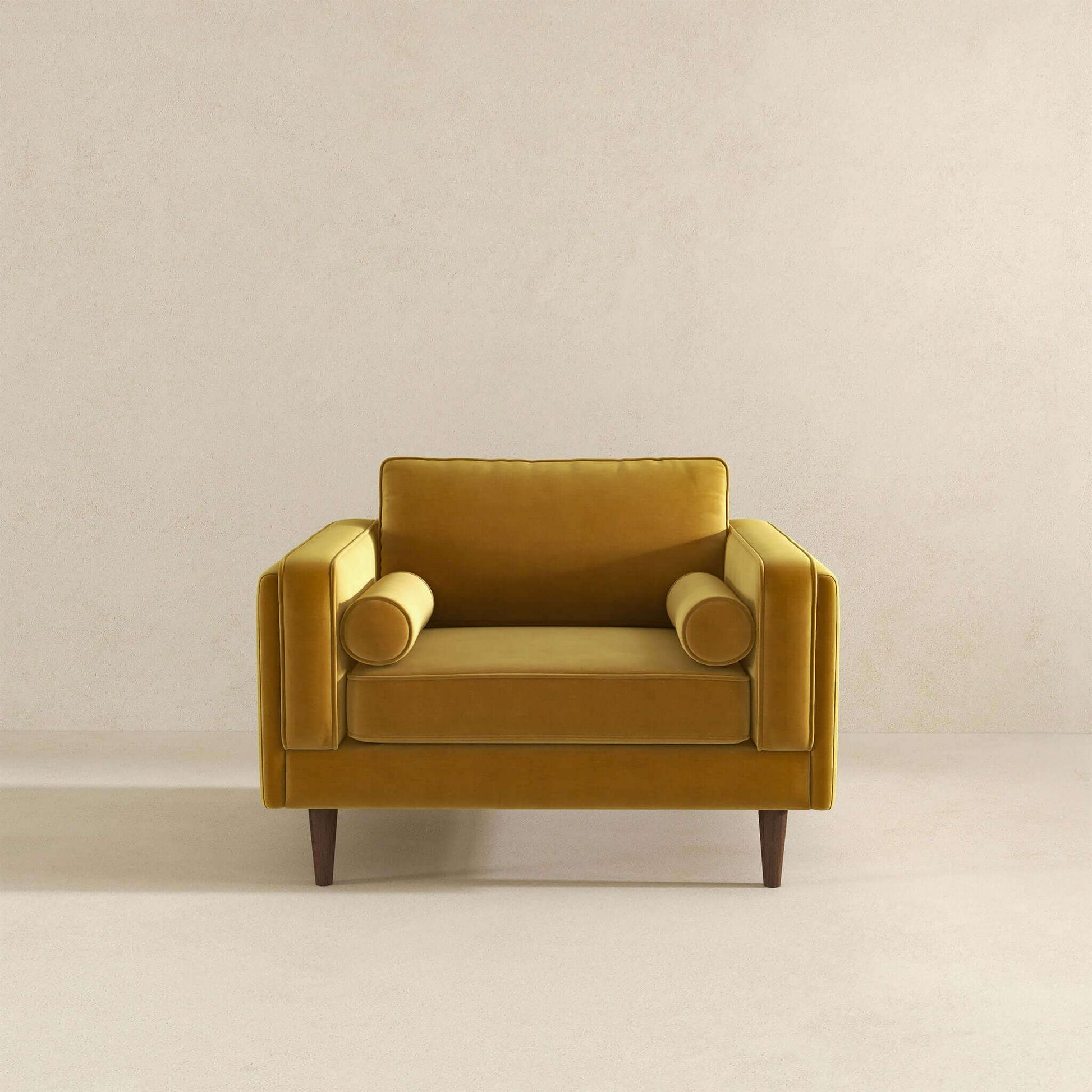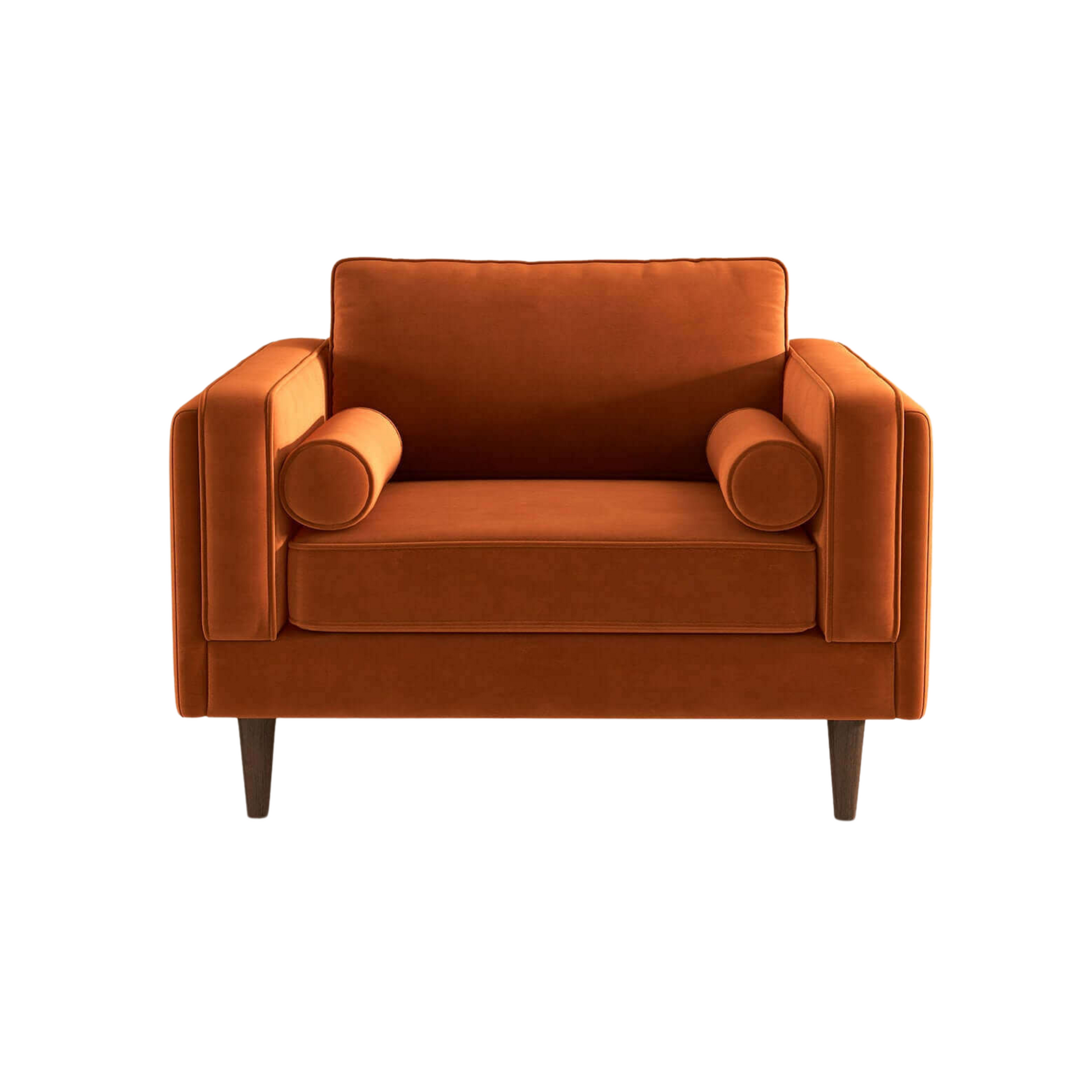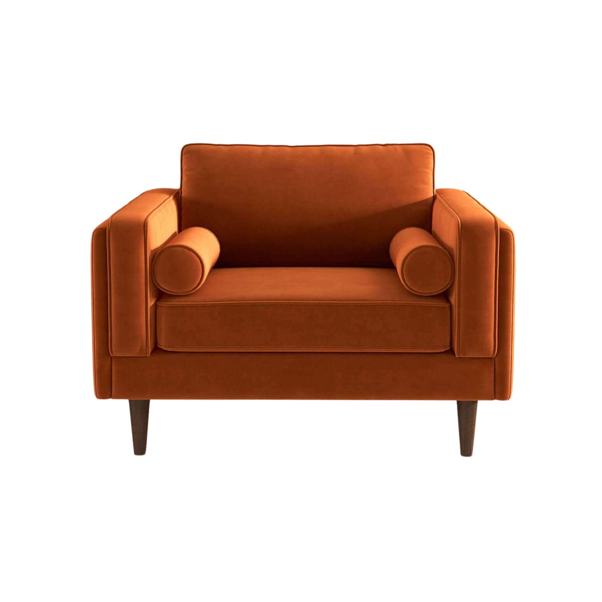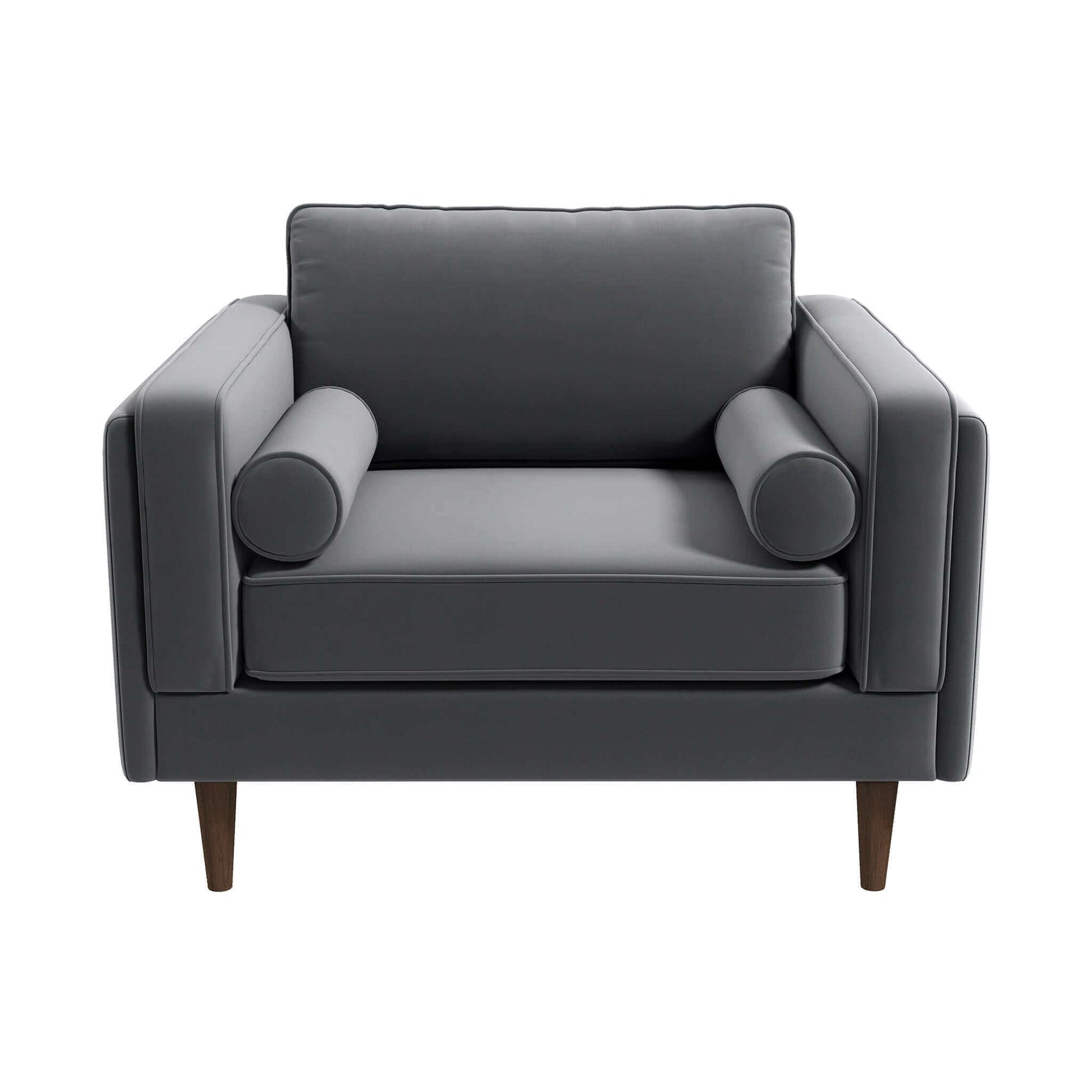 Upgrade your den or living room with an additional seating option perfect for movie nights, or add a sophisticated touch to your master suite with the Rowan Velvet Lounge Chair. With four walnut-finished legs and a solid wood frame, this chair offers both durability and style. The high-density foam padding ensures maximum comfort, while the elegant square arms and fully padded back cushion provide excellent support. Upholstered in durable, high-quality velvet and fabric, this exquisite piece is available in a variety of timeless colors to match your decor. Easily maintain its pristine appearance by cleaning with a non-abrasive solution and a microfiber cloth. The removable legs make delivery and placement effortless, even in tight spaces. Elevate your space with this luxurious and tasteful lounge chair.