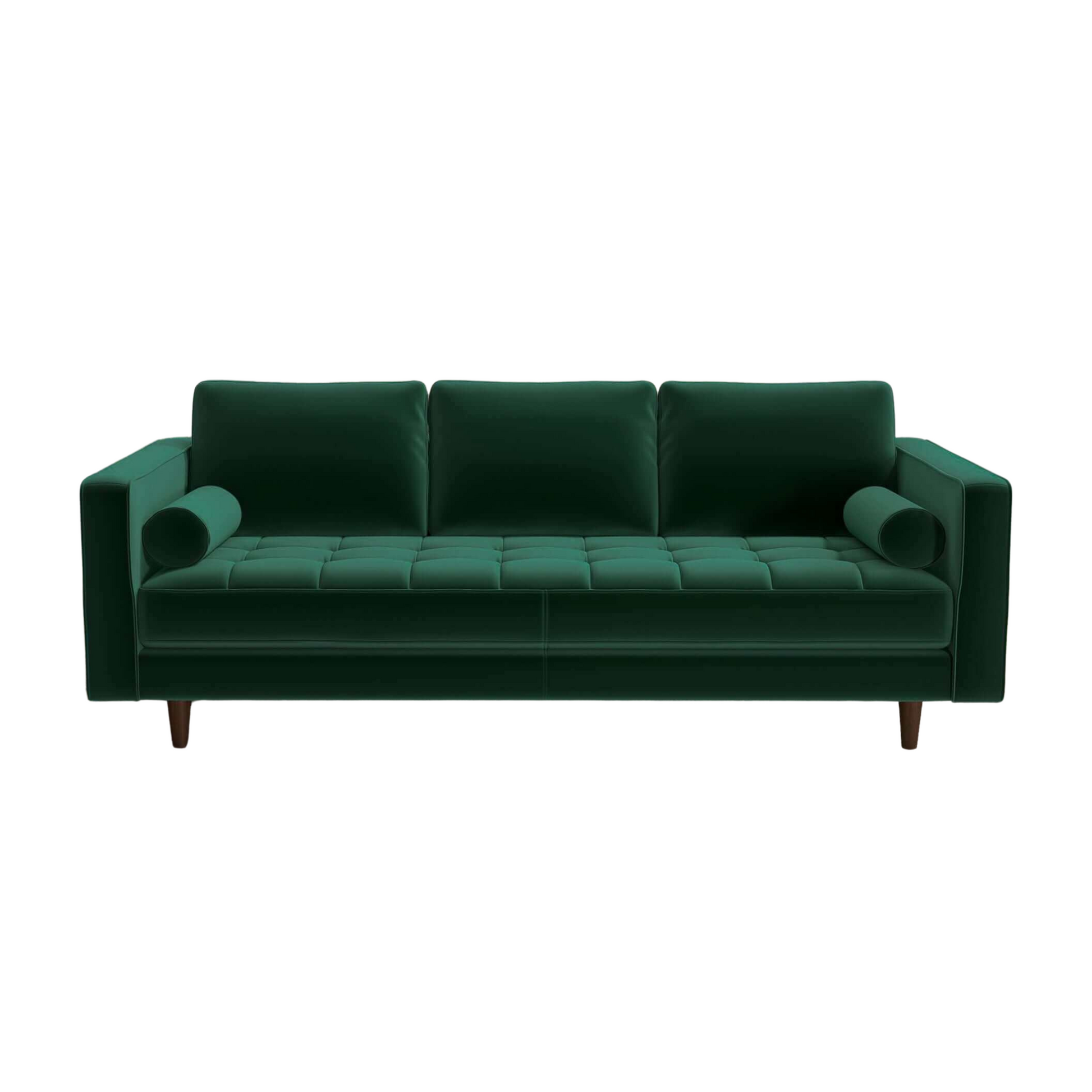 This tufted seat pillow-back sofa is a stunning piece of furniture that combines timeless elegance and modern design. Crafted with solid wood construction, this sofa is built to last and offers exceptional durability. Its mid-century modern style adds a touch of sophistication to any living room, making it the perfect centerpiece for your home. Whether you have a spacious living room, a cozy apartment, a trendy loft, or a stylish condo, this sofa seamlessly blends into any space. Its versatile design suits various settings, from casual lounging to formal entertaining.