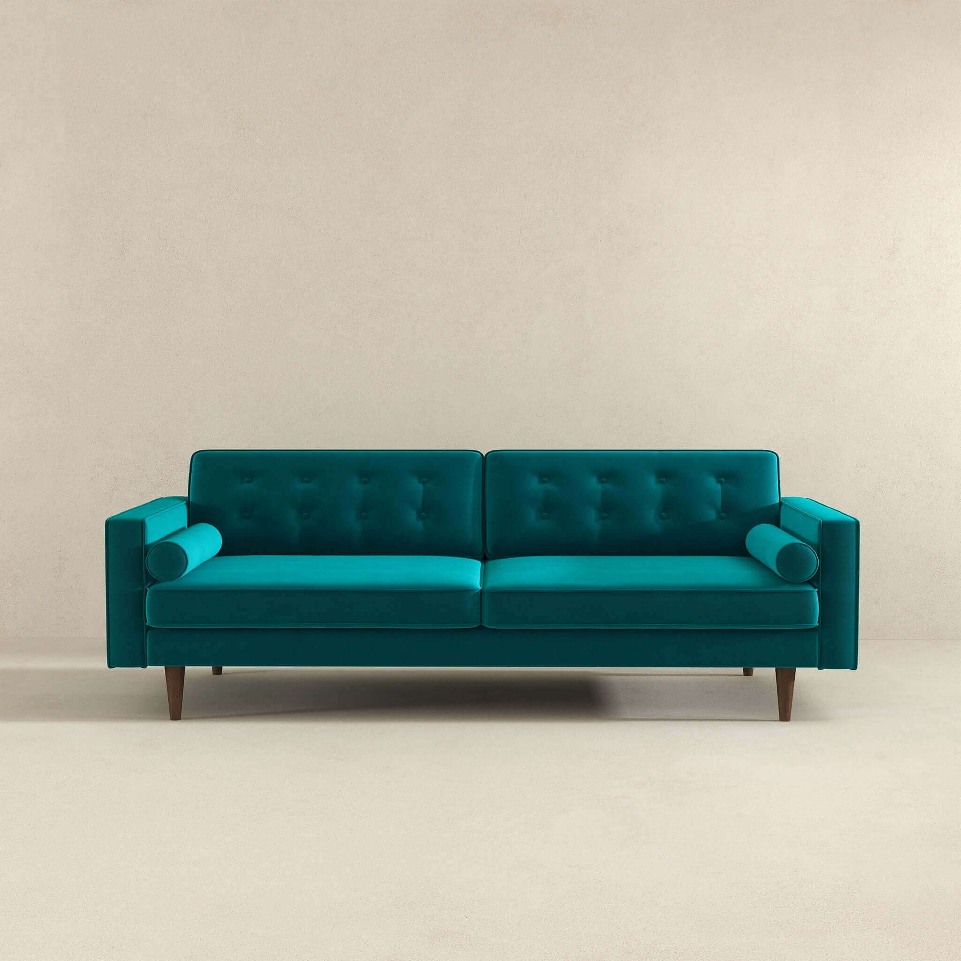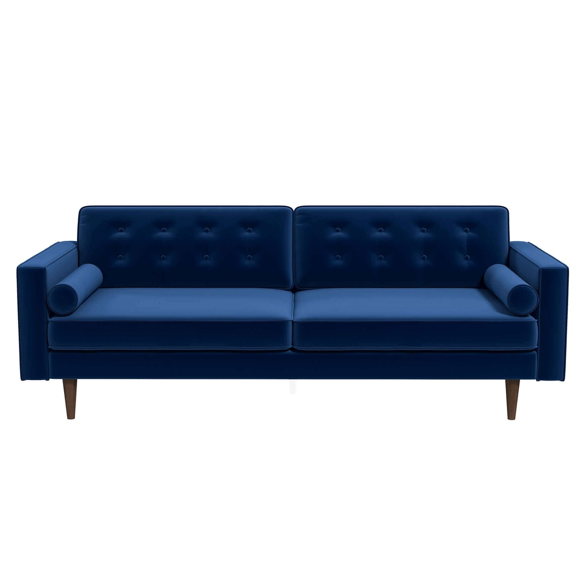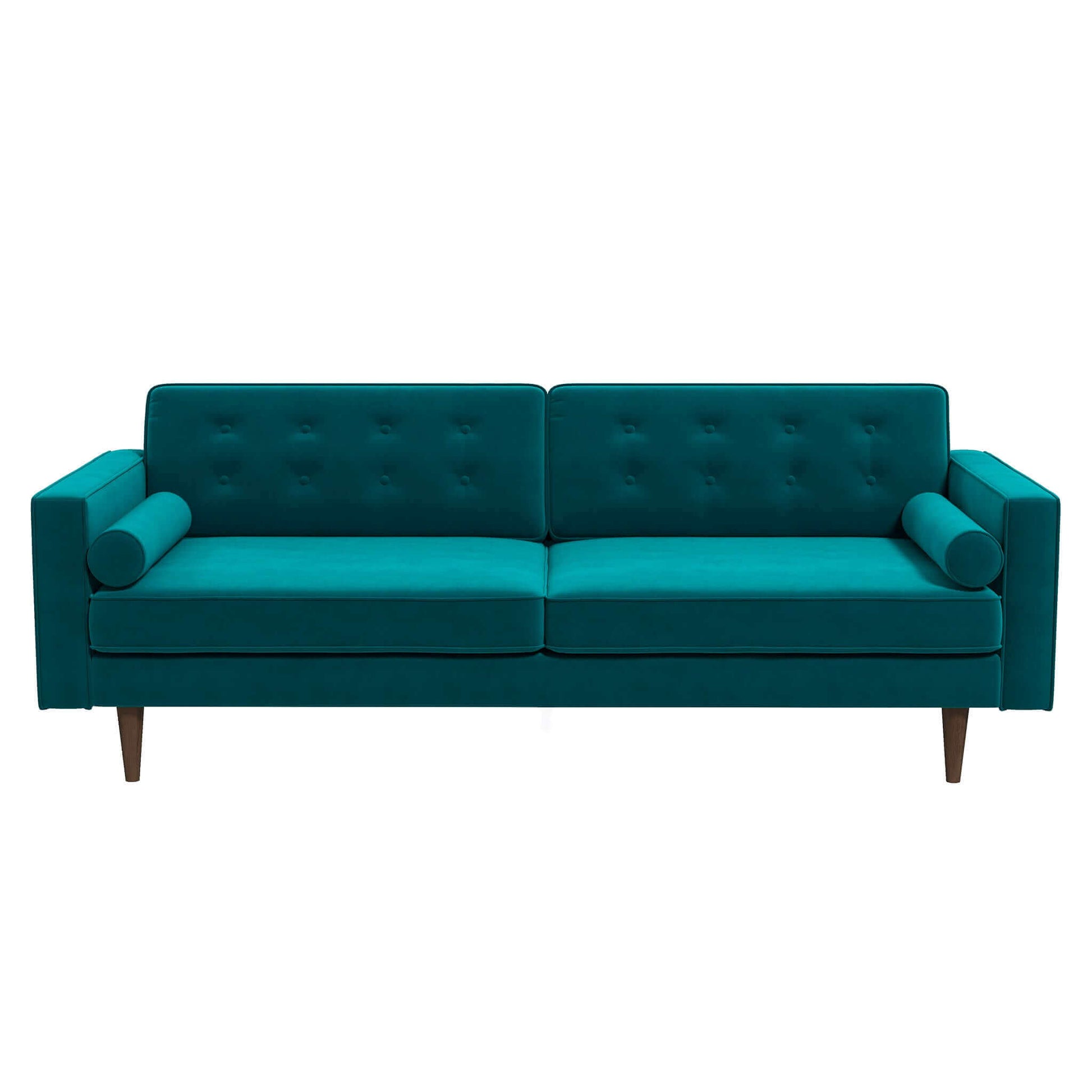 Anchor your space in mid-century modern style with the Bellamy velvet sofa. Combining durable, top-quality craftsmanship and high-density foam this sofa will provide you with great comfort and undoubtedly become the centerpiece of your living room, den, urban loft, condo or home office. It is made of velvet and can be cleaned with a non-abrasive cleaning solution followed by a quick microfiber cloth. Removable legs allow for simple delivery for tight spaces. Available in a variety of timeless colors, you're sure to find something that matches your decor