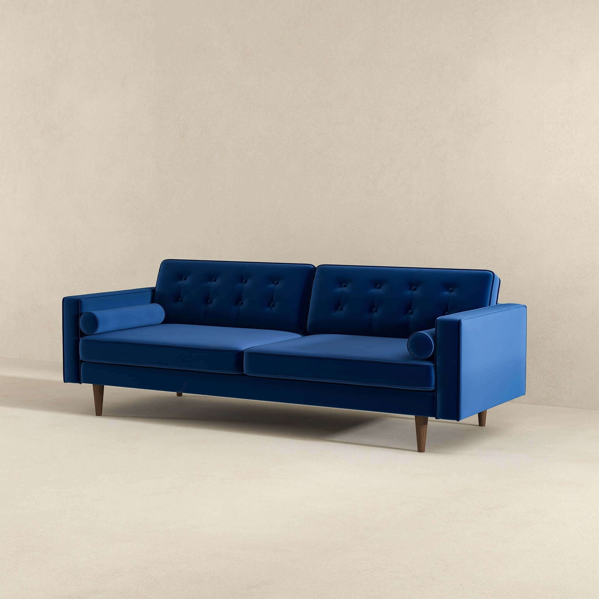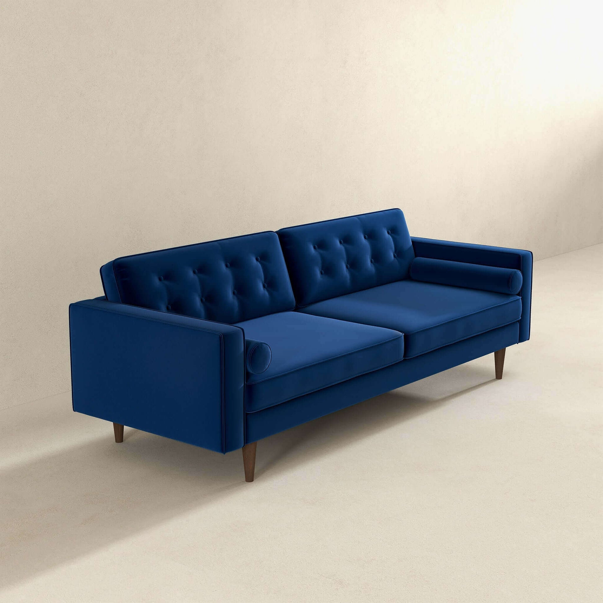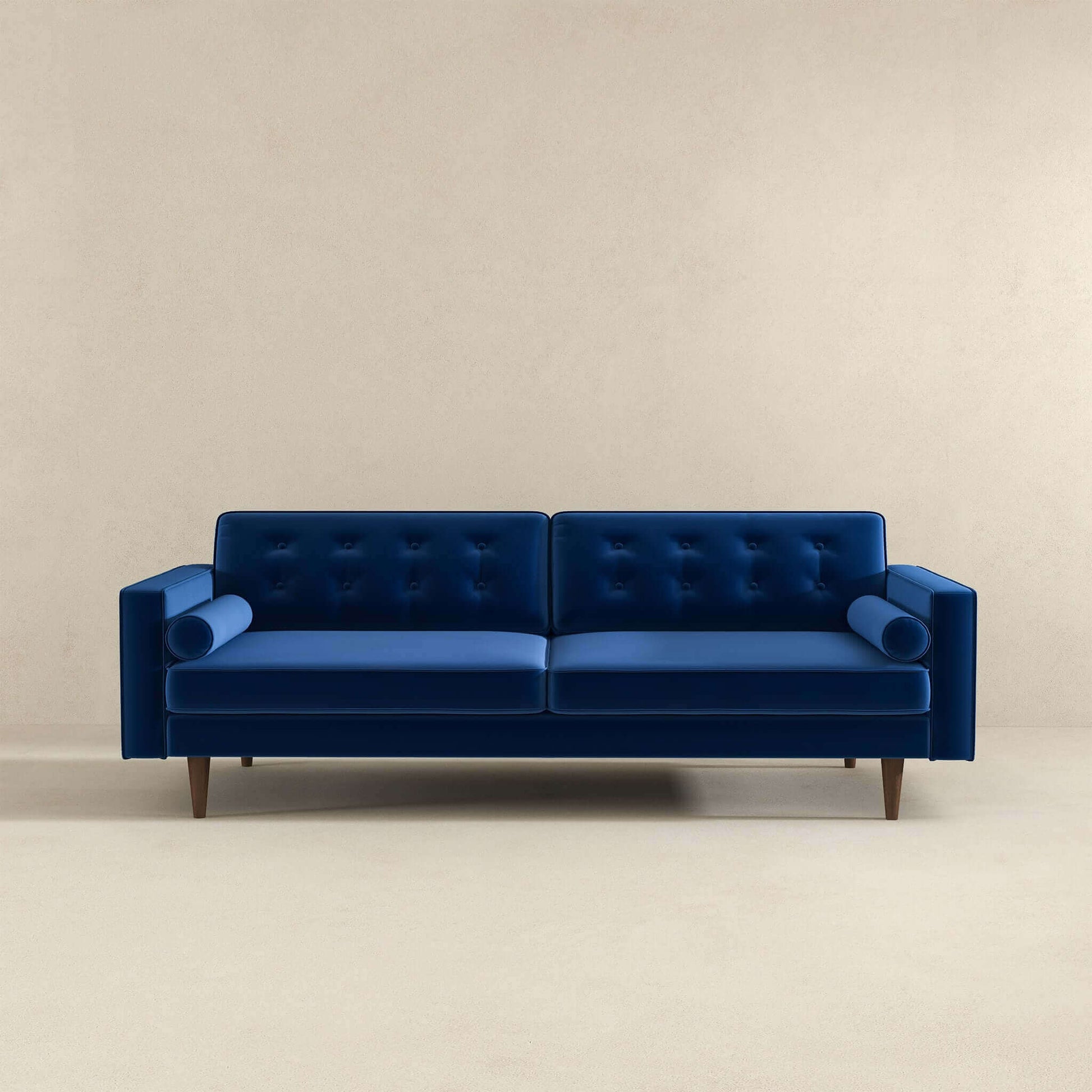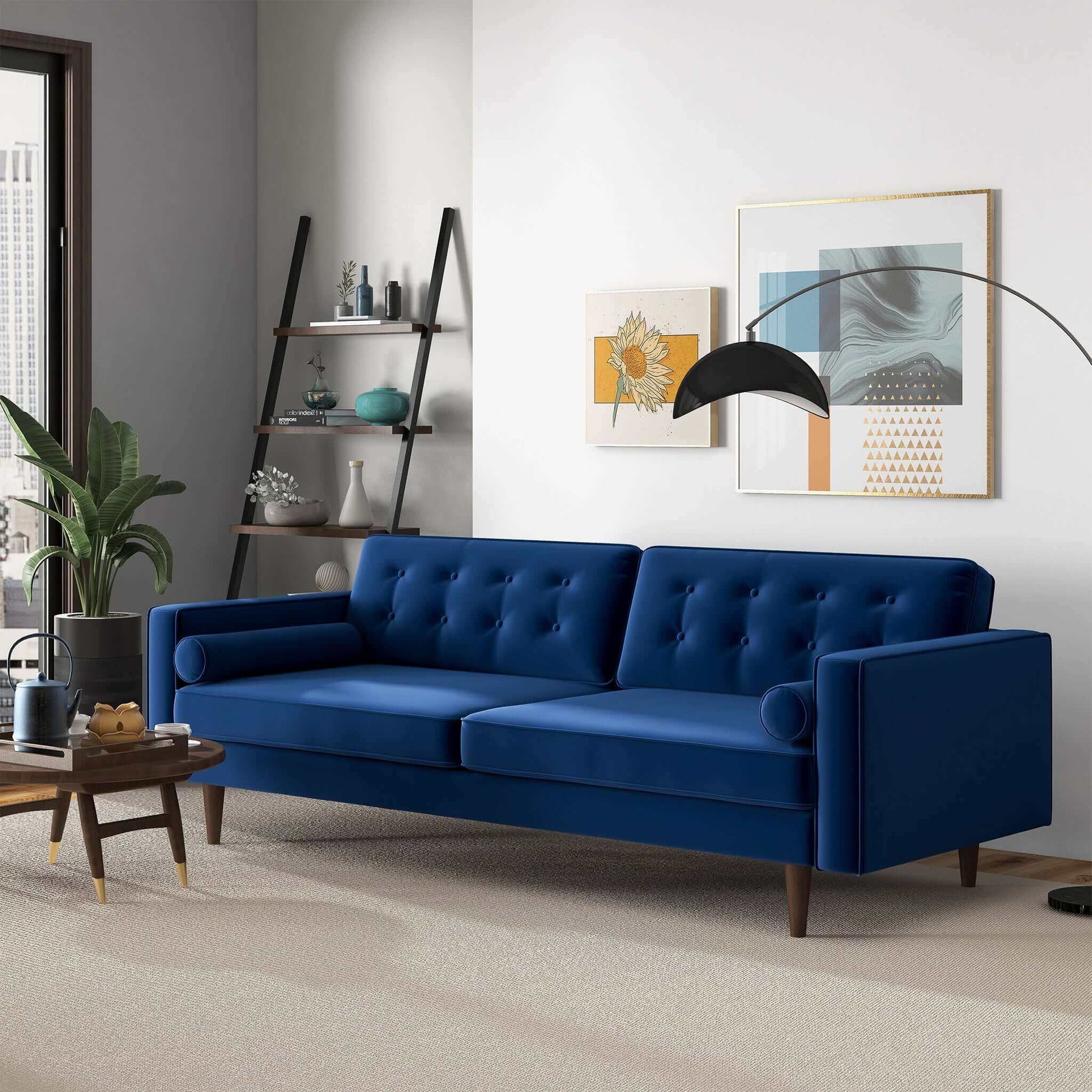 Anchor your space in mid-century modern style with the Bellamy velvet sofa. Combining durable, top-quality craftsmanship and high-density foam this sofa will provide you with great comfort and undoubtedly become the centerpiece of your living room, den, urban loft, condo or home office. It is made of velvet and can be cleaned with a non-abrasive cleaning solution followed by a quick microfiber cloth. Removable legs allow for simple delivery for tight spaces. Available in a variety of timeless colors, you're sure to find something that matches your decor
