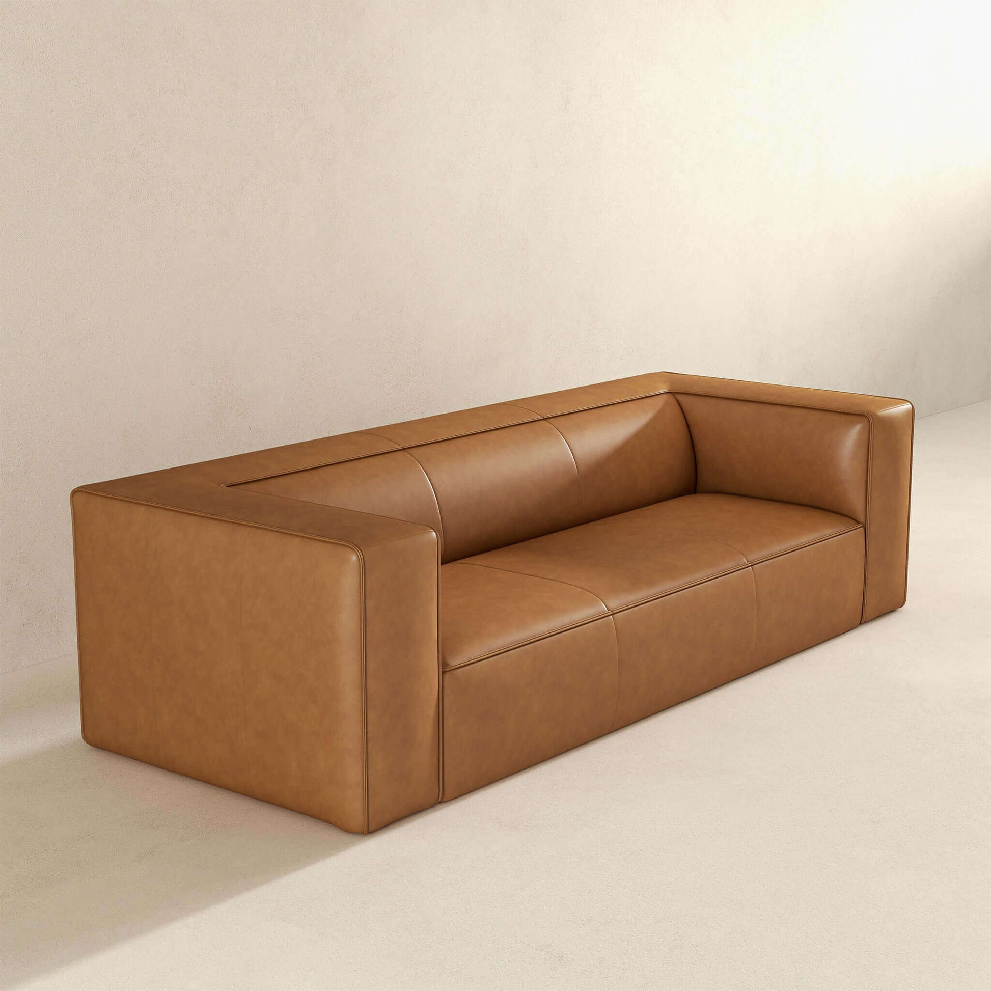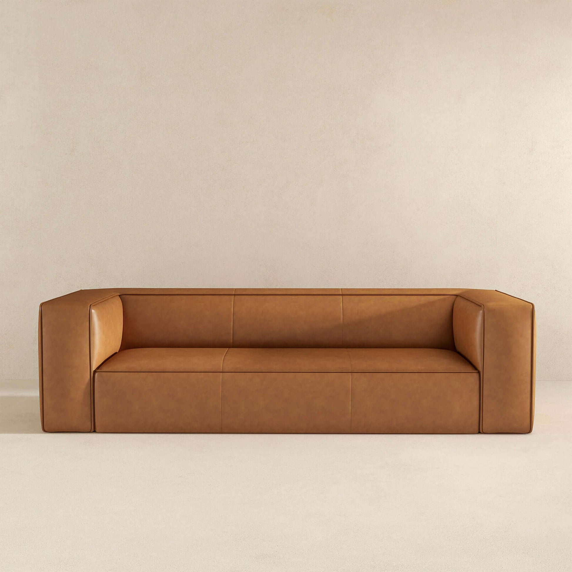 Anchor your space in mid-century modern style with the Tassiana tan Genuine Leather sofa. Combining durable, top-quality craftsmanship and high-density foam this sofa will provide you with great comfort and undoubtedly become the centerpiece of your living room, den, urban loft, condo or home office. It is made of Genuine Leather and can be cleaned with a non-abrasive cleaning solution followed by a quick microfiber cloth. Removable legs allow for simple delivery for tight spaces. Available in a variety of timeless colors, you're sure to find something that matches your decor