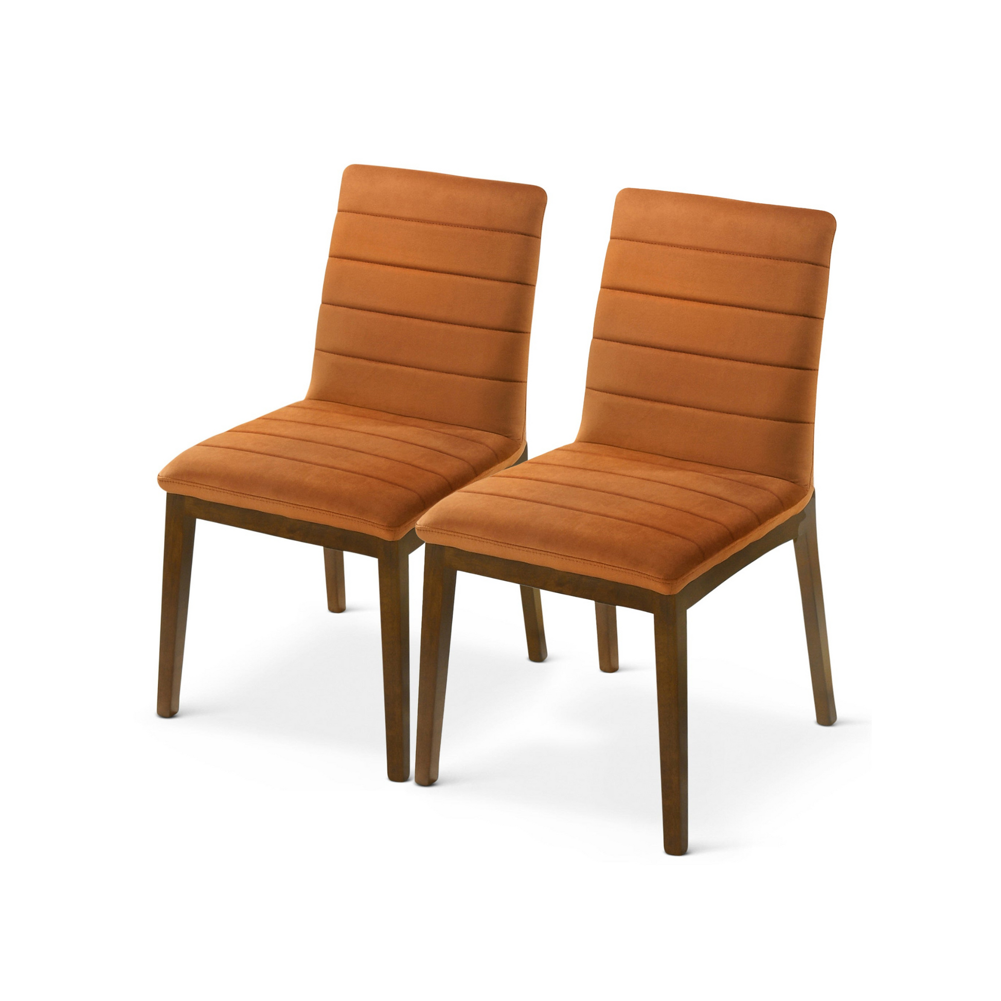 Introducing our Modern Dining Chairs – a seamless fusion of comfort, style, and practicality for your living spaces. Crafted with a solid wood walnut-colored base, these dining chairs effortlessly infuse a hint of mid-century modern charm into your home. The set of 2 burnt orange velvet upholstered chairs not only radiate sophistication but also guarantee a snug and enjoyable dining experience.