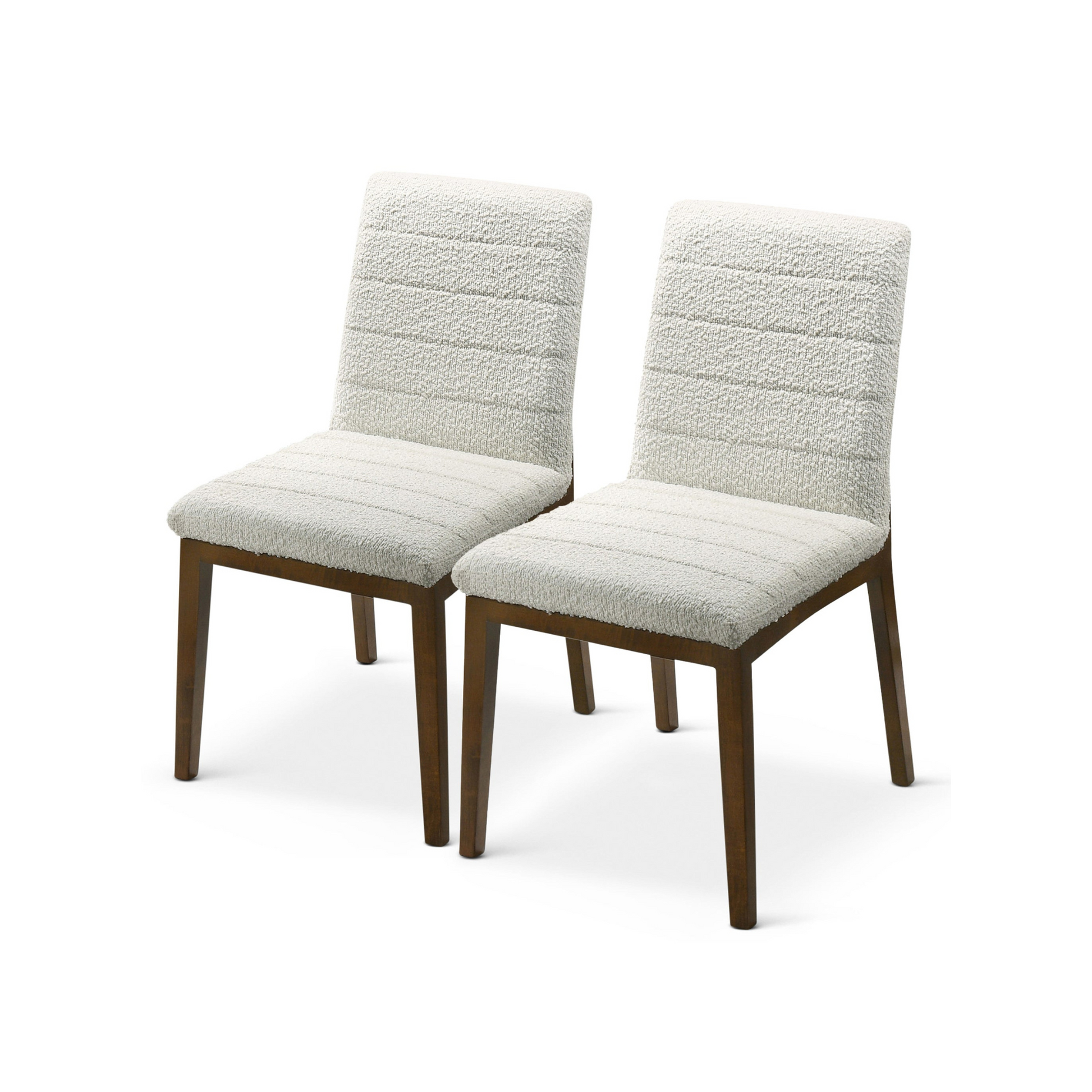 Upholstered in a Soft Textured Fabric in White, Solid Wood Legs and Frame, Foam-Padded Seat and Back, Mid Century Modern Design