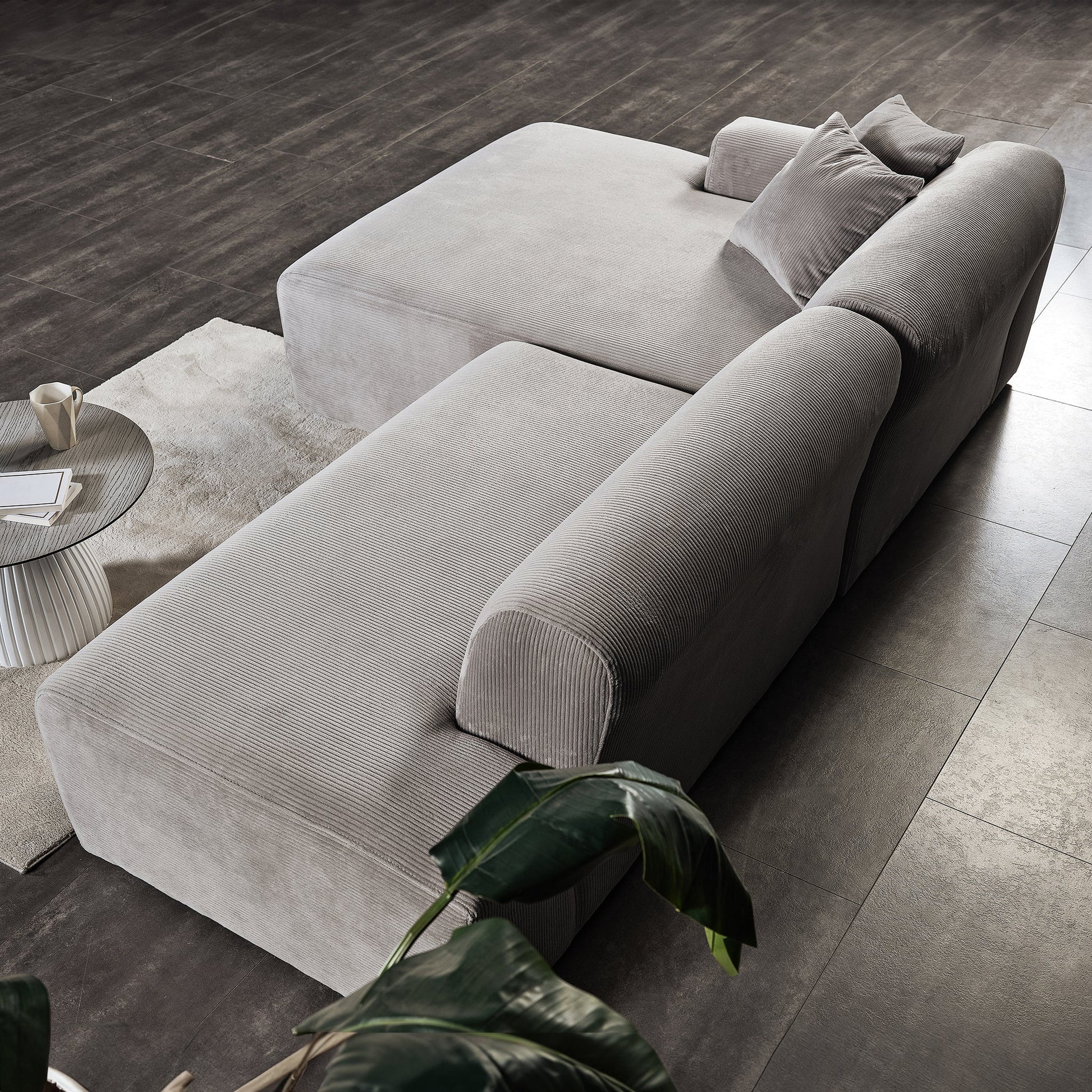 The Fairfield Sectional is possibly the most comfortable piece yet. The Luxe merges a sleek design with layers of supreme comfort, perfect for withstanding the most energetic families. Sink into its deep-seated, corded cushions for a truly heavenly experience, combining durability and unparalleled coziness in one stunning package. Upholstered in performance velvet fabric. The seat and back cushions are foam-padded to provide comfortable support. Semi-firm comfort level is provided by high-gauge sinuous springs. Frame crafted from solid and engineered wood with strengthened joints. Includes two toss pillows. To provide further durability, every wood is kiln-dried. Legs crafted from solid wood with removable feature, finished elegantly in natural. Clean with water-based or dry, solvent-based cleaners.