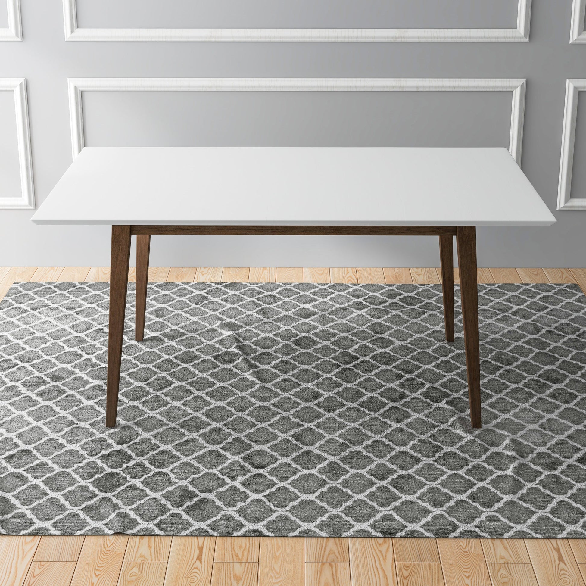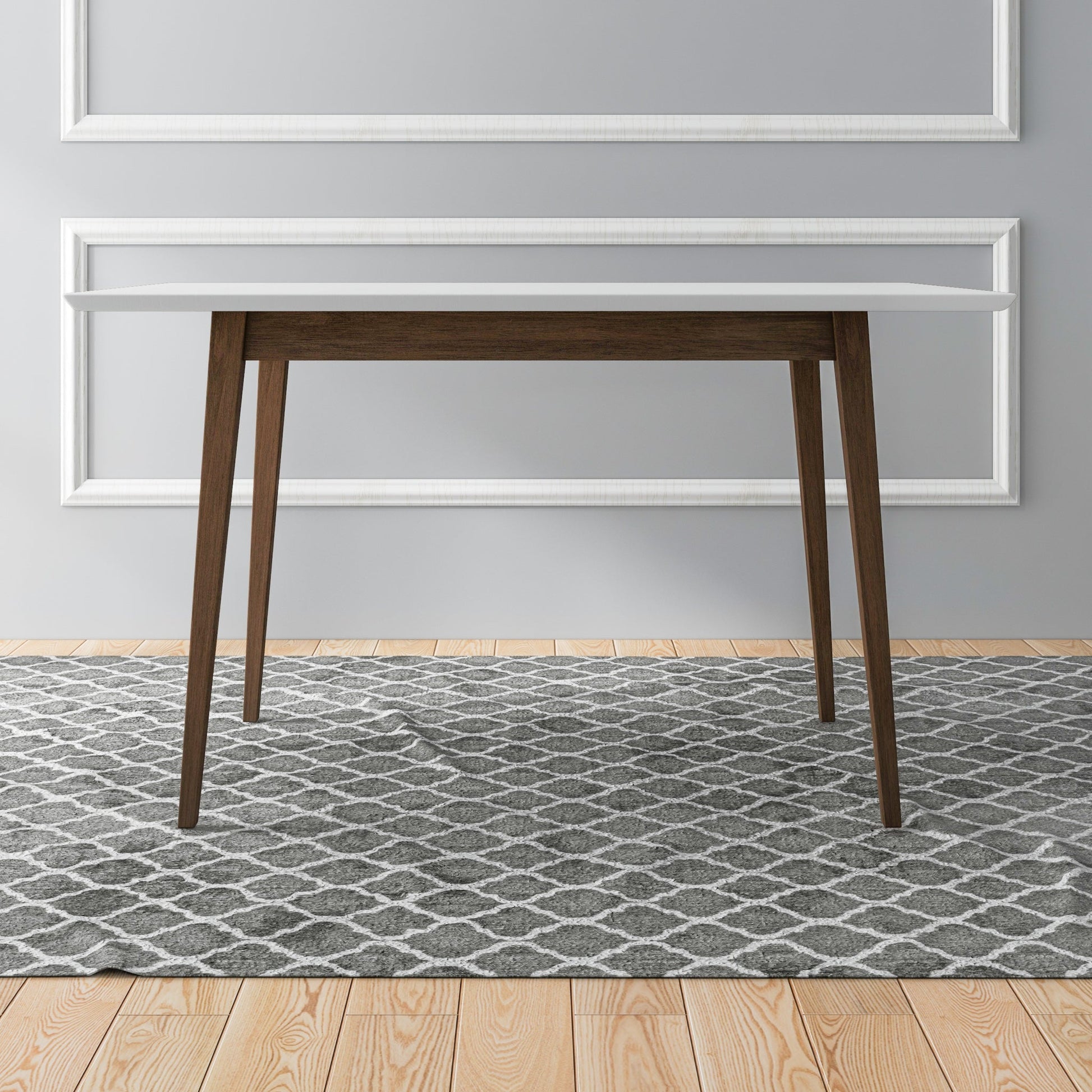 Introducing the Loxley Mid-Century Rectangular 63-inch Large Solid Wood Dining Table in Brown. This exquisite mid-century modern furniture piece is the perfect addition to any dining room set. Crafted from durable and easy-to-clean wood, this rectangular dining table comfortably accommodates 4 chairs, making it ideal for breakfast or small kitchen sets. Inspired by modern design, its solid wood construction offers both style and wide seating space for each member. The beveled edges add a touch of safety, making it suitable for families with children and enhancing your overall design scheme. Its compact size allows for versatile placement in apartments, lofts, condos, and houses. It can be used as a living room table, kitchen breakfast table, or even a study desk in dorms and home offices. With its exceptional style and quality, this dining table offers great value for money, fitting into various budgets. The table is made of water-resistant solid wood, ensuring durability in wet and humid kitchen environments. The solid wood legs provide strength and can be easily repaired with a wood color touch-up pen. Assembly is a breeze, as you only need to attach the legs using the included tool and instructions. The thick walnut top with a reverse bevel edge adds a touch of elegance, and the table comfortably accommodates up to 6 adults. Its 100% kiln-dried wood structure guarantees long-lasting durability. Enjoy the convenience of very minimal assembly required, allowing you to swiftly set up your new dining table.