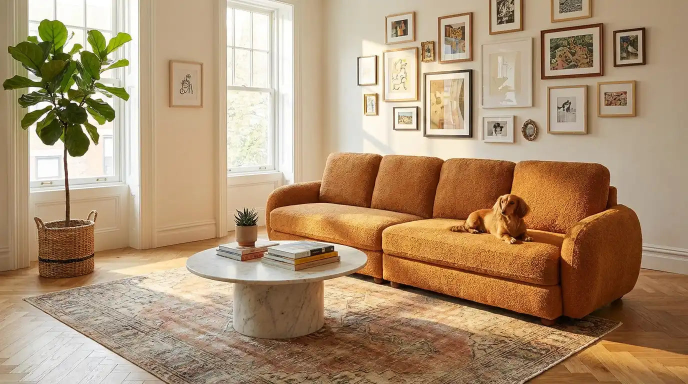 Every element of the Ramsey Sofa has been carefully considered. The kiln-dried hardwood frame provides lasting structural integrity, while the eight-way hand-tied springs deliver superior support and comfort. Plush cushioning strikes the perfect balance between supportive and inviting. Available in Orange Fabric and Cream Fabric, each finish carefully curated to complement discerning interiors.